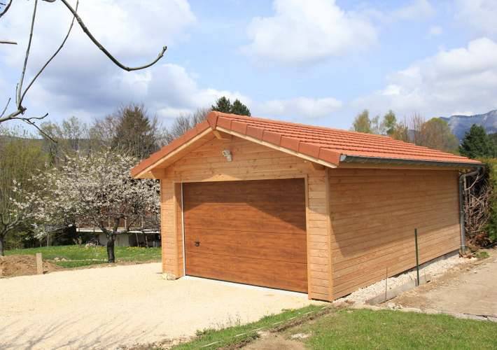 Osébois a réalisé ce garage en bois sur la commune de Saint Julien en Vercors. Ce garage se compose de murs ossature bois, d'une charpente traditionnelle taillée par l'équipe d'Osébois à l'atelier, d'un bardage en douglas et de tuiles terre cuite. La porte est isolée et motorisée pour une utilisation plus simple.